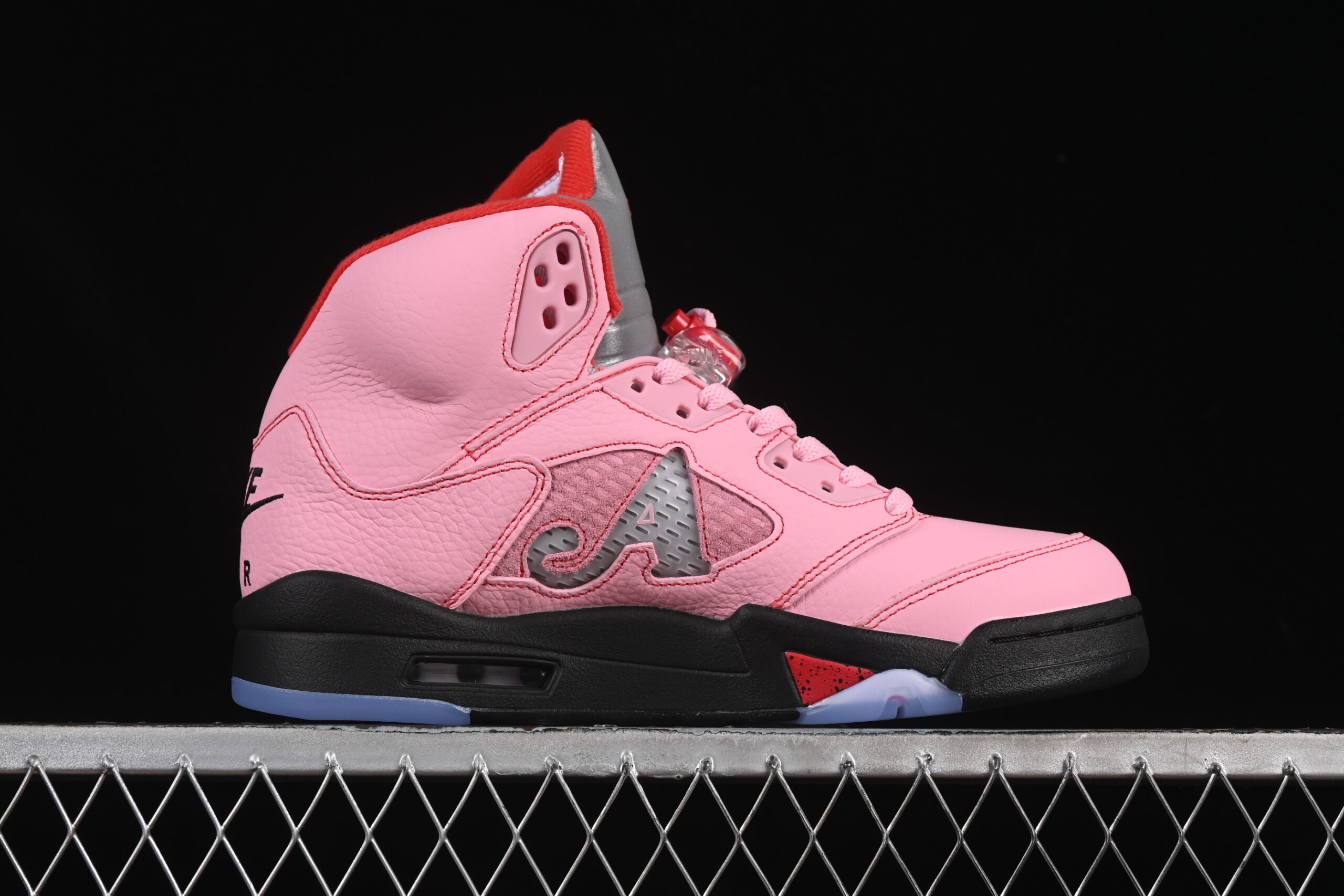 The OG Awake NY x Air Jordan 5 Arctic Pink DV4982-600 delivers a standout collaboration combining the classic AJ5 silhouette with Awake NY’s elevated streetwear design. This version showcases an Arctic Pink leather construction, reflective metallic tongue, custom branding, and translucent details.