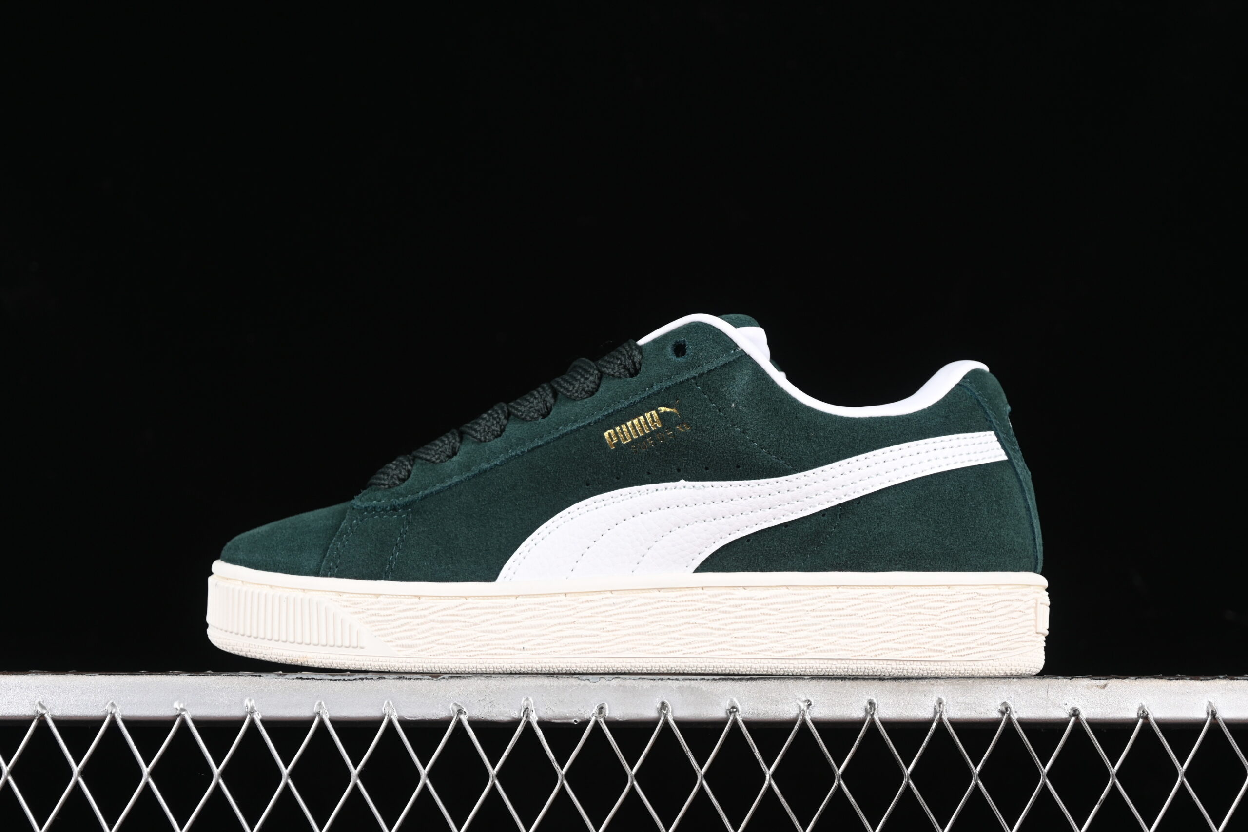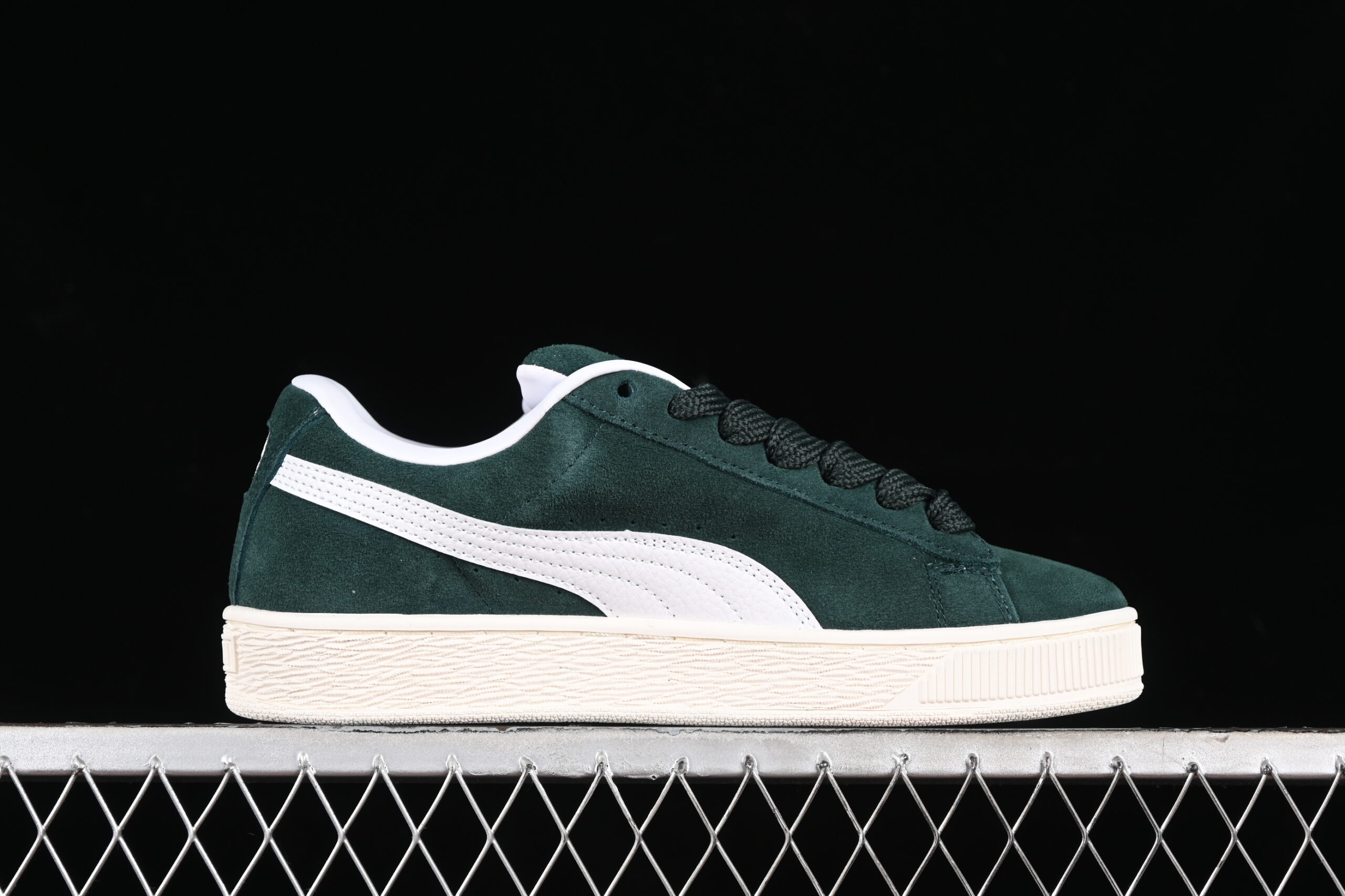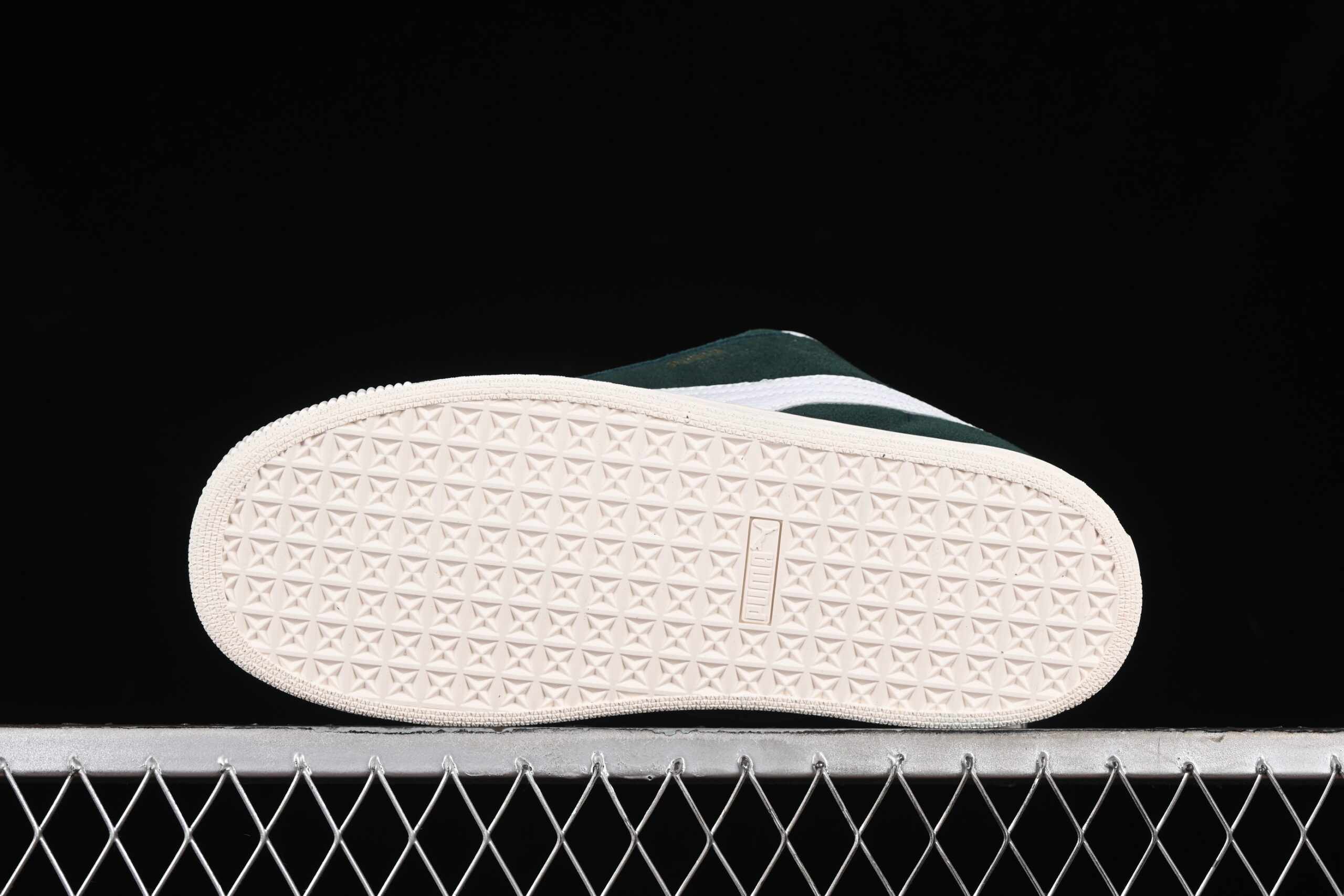 • Signature Formstrip: The classic Puma Formstrip is executed in a clean white, providing a sharp contrast against the green base.